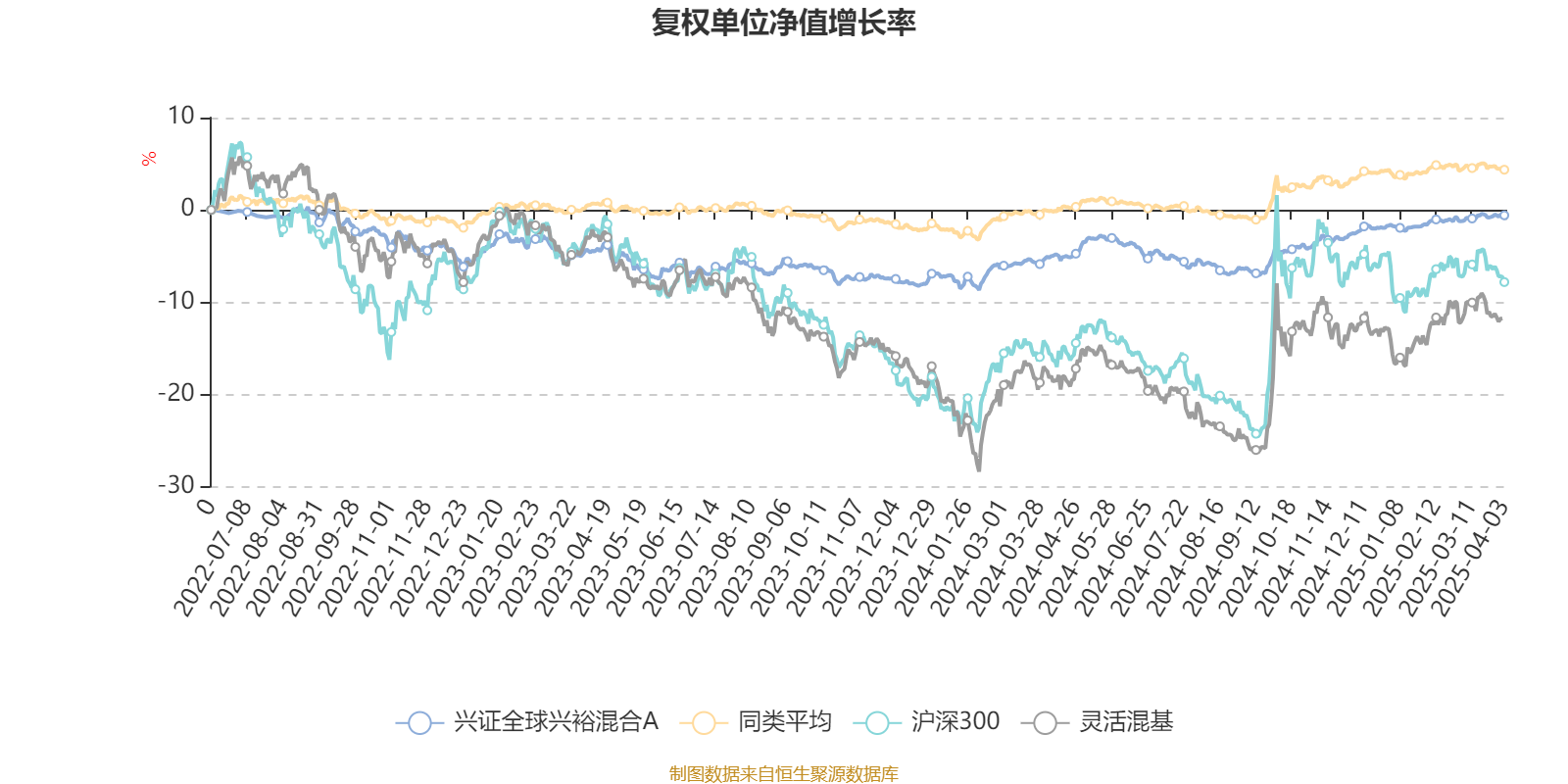 截至4月3日,兴证全球兴裕混合A近三个月复权单位净值增长率为1.22%,位于同类可比基金38/155;近半年复权单位净值增长率为3.81%,位于同类可比基金19/155;近一年复权单位净值增长率为4.73%,位于同类可比基金64/155。