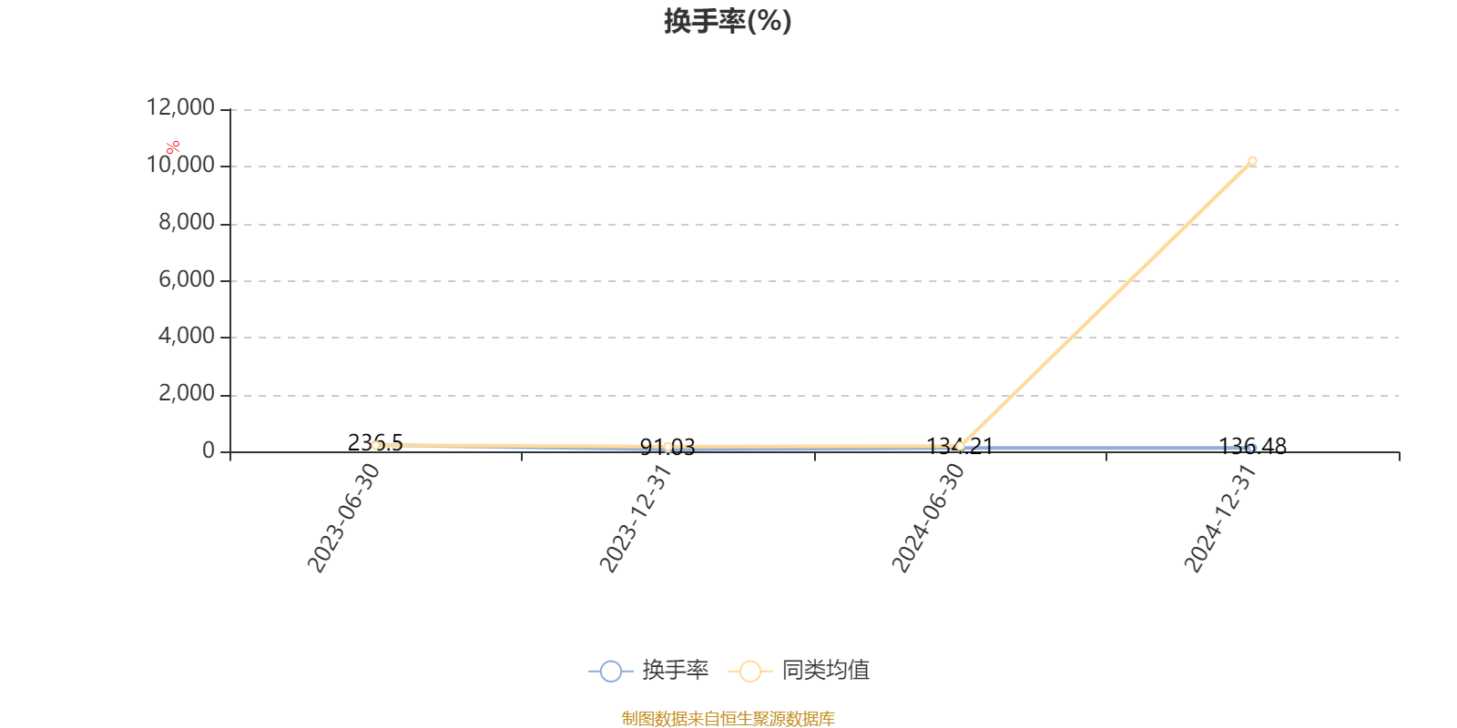 截至2024年12月31日,基金最近一年换手率约273.58%,持续1年低于同类均值。