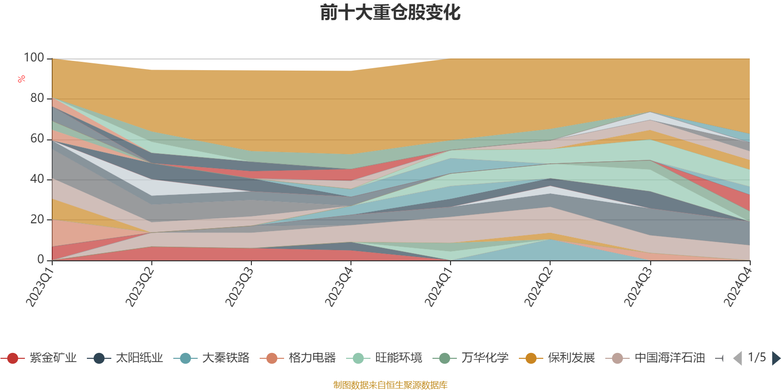 该基金持股集中度较高。截至2024年末,基金十大重仓股分别是梅花生物、广信股份、蓝天燃气、中国海洋石油、中国燃气、九丰能源、中信特钢、绿色动力环保、中信银行、长江电力。