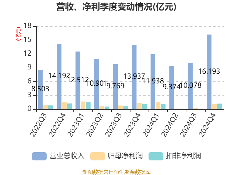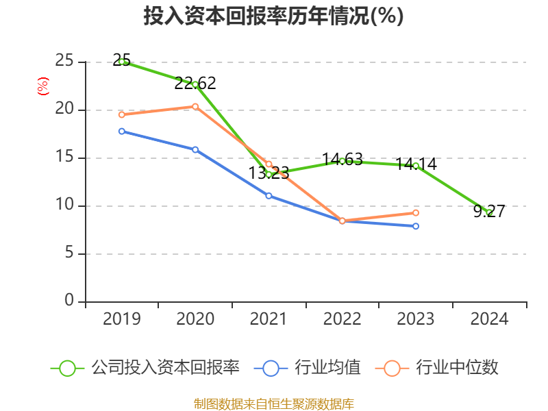 数据显示,2024年公司加权平均净资产收益率为10.37%,较上年同期下降7.16个百分点。公司2024年投入资本回报率为9.27%,较上年同期下降4.87个百分点。