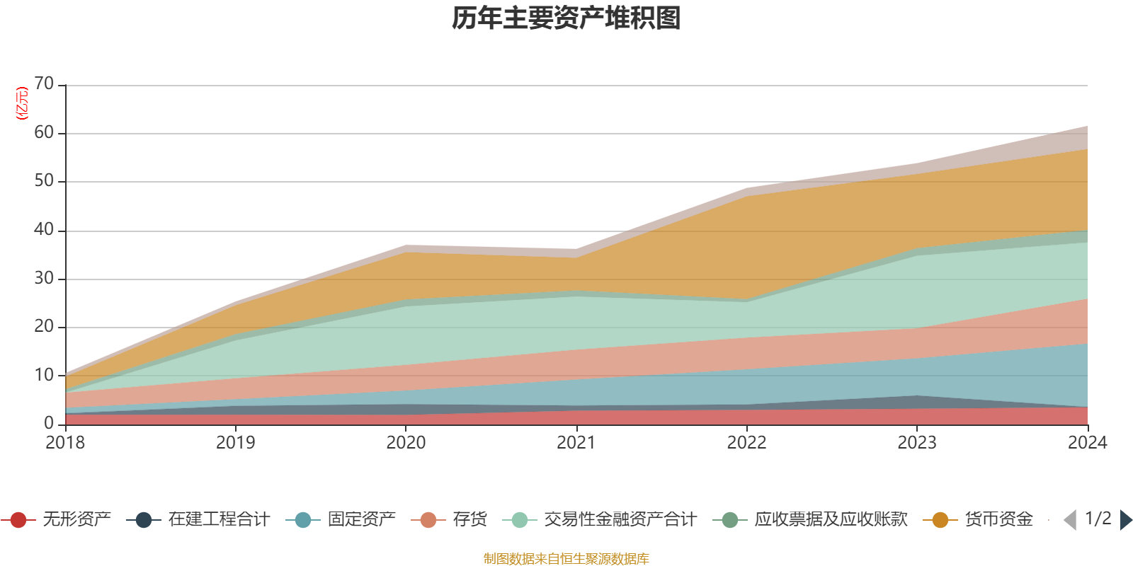 资产重大变化方面,截至2024年末,公司交易性金融资产合计较上年末减少22.24%,占公司总资产比重下降8.85个百分点;固定资产较上年末增加69.87%,占公司总资产比重上升6.95个百分点;在建工程合计较上年末减少97.41%,占公司总资产比重下降4.95个百分点;存货较上年末增加49.14%,占公司总资产比重上升3.51个百分点。
