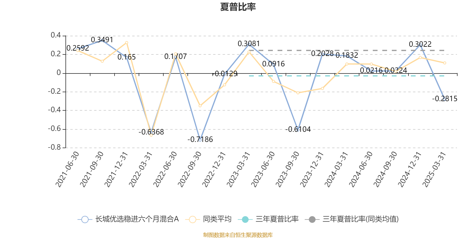 截至3月31日,基金近三年夏普比率为-0.0305,位于同类可比基金425/545。