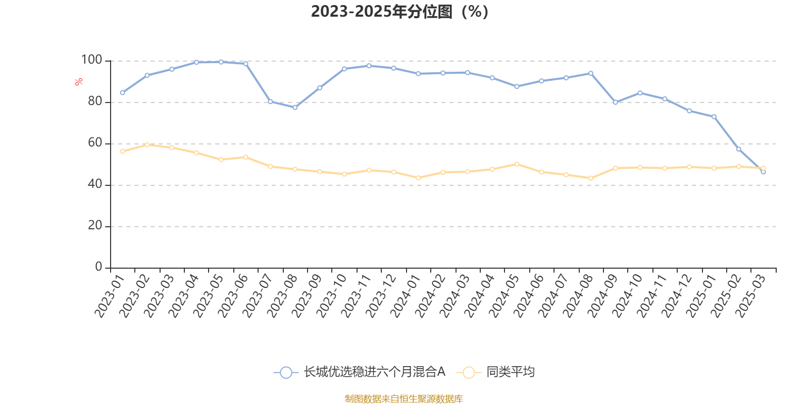 通过所选区间该基金净值增长率分位图,可以观察该基金与同类基金业绩比较情况。图为坐标原点到区间内某时点的净值增长率在同类基金中的分位数。