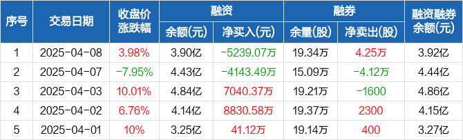 兰石重装融资融券信息显示,2025年4月8日融资净偿还5239.07万元;融资余额3.9亿元,较前一日下降11.84%。