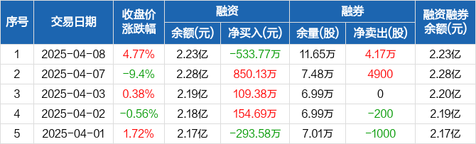 雪天盐业融资融券信息显示,2025年4月8日融资净偿还533.77万元;融资余额2.23亿元,较前一日下降2.34%