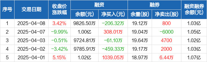 久立特材融资融券信息显示,2025年4月8日融资净偿还206.32万元;融资余额9826.5万元,较前一日下降2.06%。