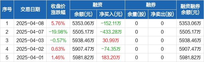 深圳瑞捷融资融券信息显示,2025年4月8日融资净偿还152.11万元;融资余额5353.06万元,较前一日下降2.76%。