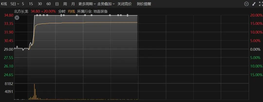 军工电子、航天装备、航空装备、航海装备等也大幅走高,通易航天开盘仅约3分钟就垂直30%涨停,晨曦航空、中船应急等近10股20cm封板,内蒙一机、中国海防等批量涨停。