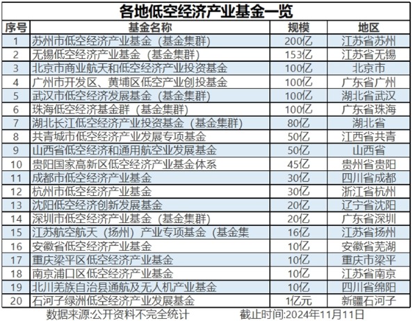 2024年12月,国务院办公厅印发《关于优化完善地方政府专项债券管理机制的意见》,明确地方政府专项债券可用作低空经济等新兴产业基础设施项目资本金。2025年中央财政安排超长期特别国债2000亿元用于设备更新,低空装备被纳入重点扶持领域,消费级无人机、eVTOL等将直接受益。目前多地已设立低空经济产业基金,重点用于支持起降场、低空智联网建设。