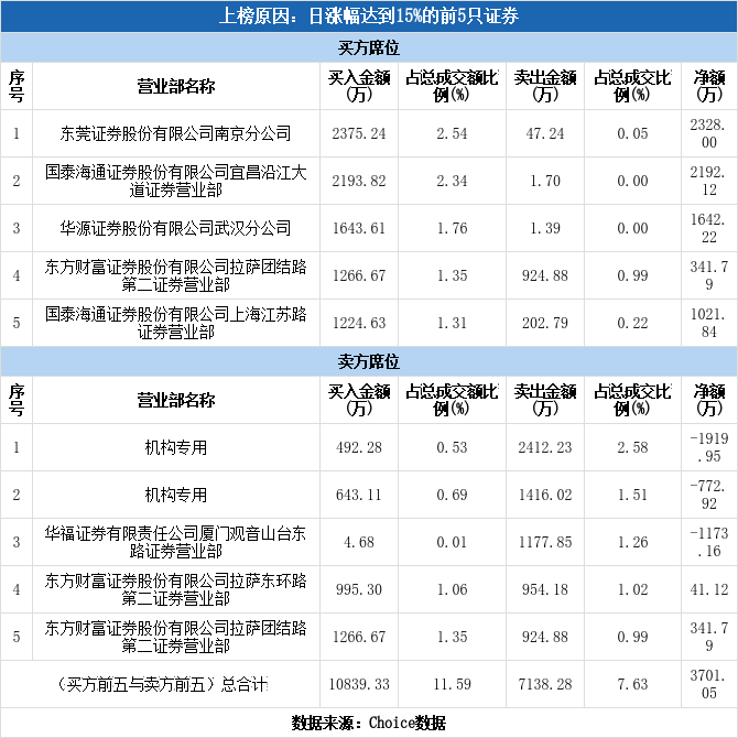 多主力现身龙虎榜,飞力达涨停(04-09)