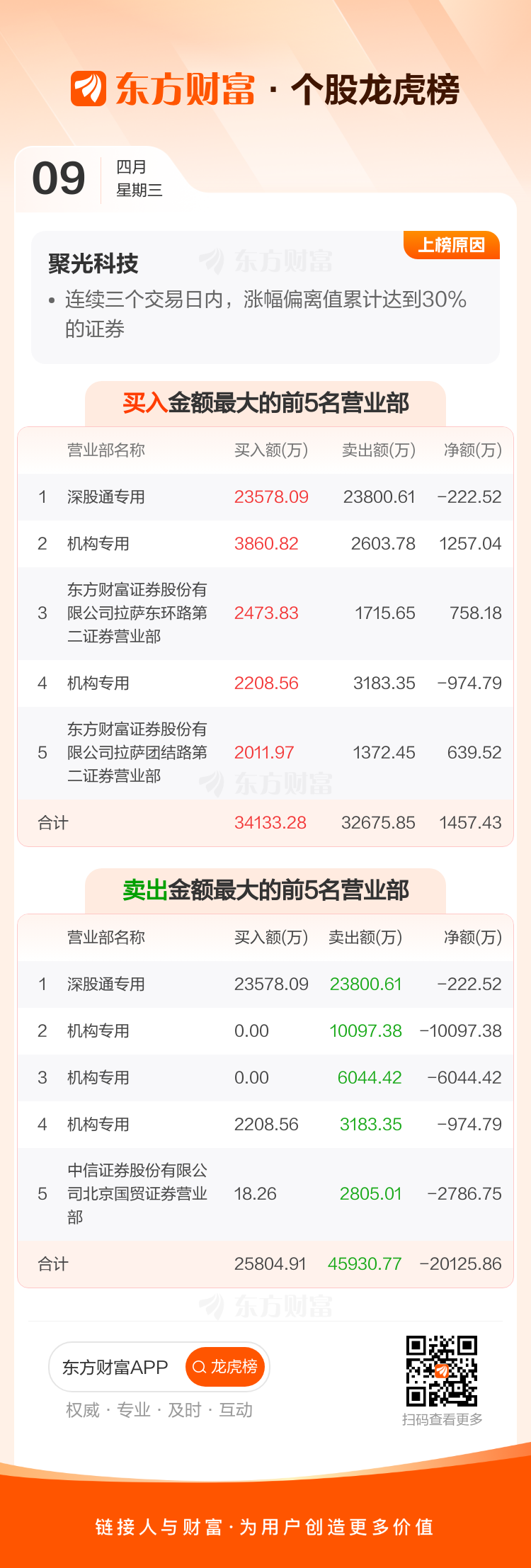 交易所2025年4月9日公布的交易公开信息显示,聚光科技因成为连续三个交易日内,涨幅偏离值累计达到30%的证券上榜。聚光科技当日收报22.03元,涨跌幅17.62%,换手率16.56%,成交额15.41亿。异常期间4月7日至4月9日,期间涨幅27.41%,累计偏离值38.08%,区间成交额33.12亿。