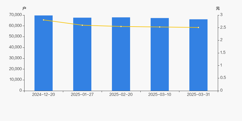 2024年12月20日至今,公司股东户数有所下降,区间跌幅为5.12%。2024年12月20日至2025年3月31日区间股价下降10.68%。