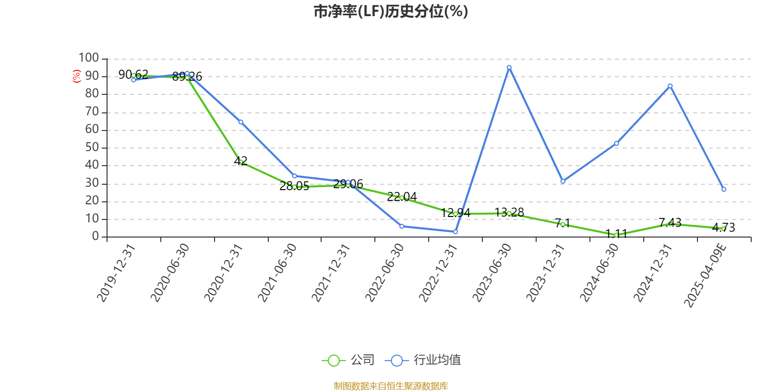 市盈率、市净率为负时,不显示当期分位数,会导致折线图中断。