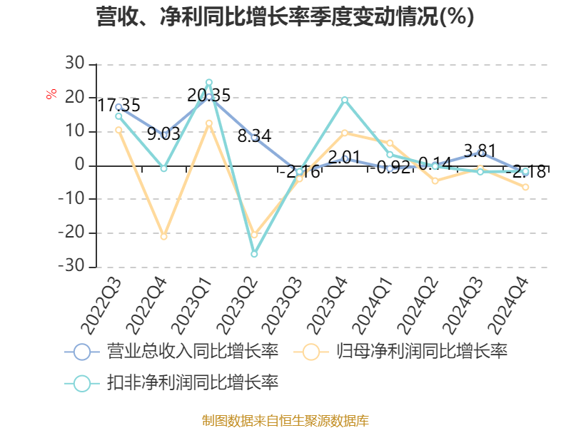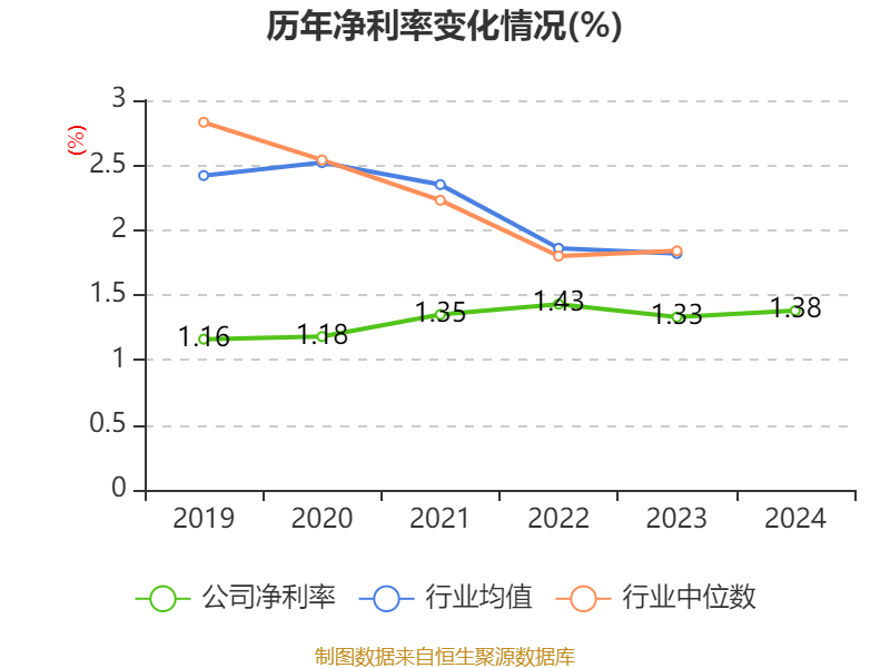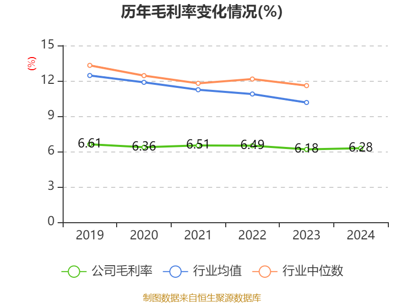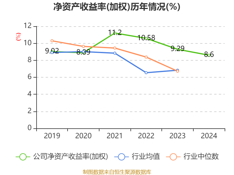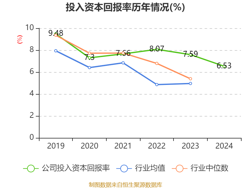 数据显示,2024年公司加权平均净资产收益率为8.6%,较上年同期下降0.69个百分点。公司2024年投入资本回报率为6.53%,较上年同期下降1.06个百分点。