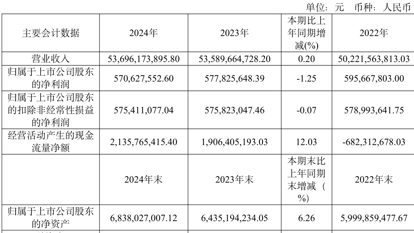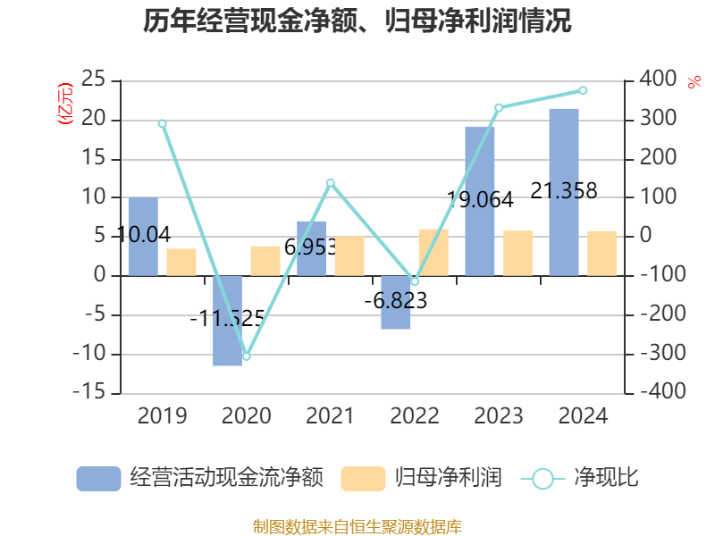 截至2024年,公司经营活动现金流净额为21.36亿元,同比增长12.03%;筹资活动现金流净额-8.4亿元,同比增加3.17亿元;投资活动现金流净额-5.62亿元,上年同期为-1.73亿元。