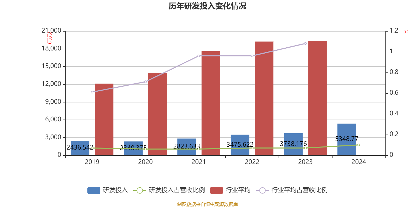 2024年全年,公司研发投入金额为5348.77万元,同比增长43.09%;研发投入占营业收入比例为0.1%,相比上年同期上升0.03个百分点。此外,公司全年研发投入资本化率为42.73%。
