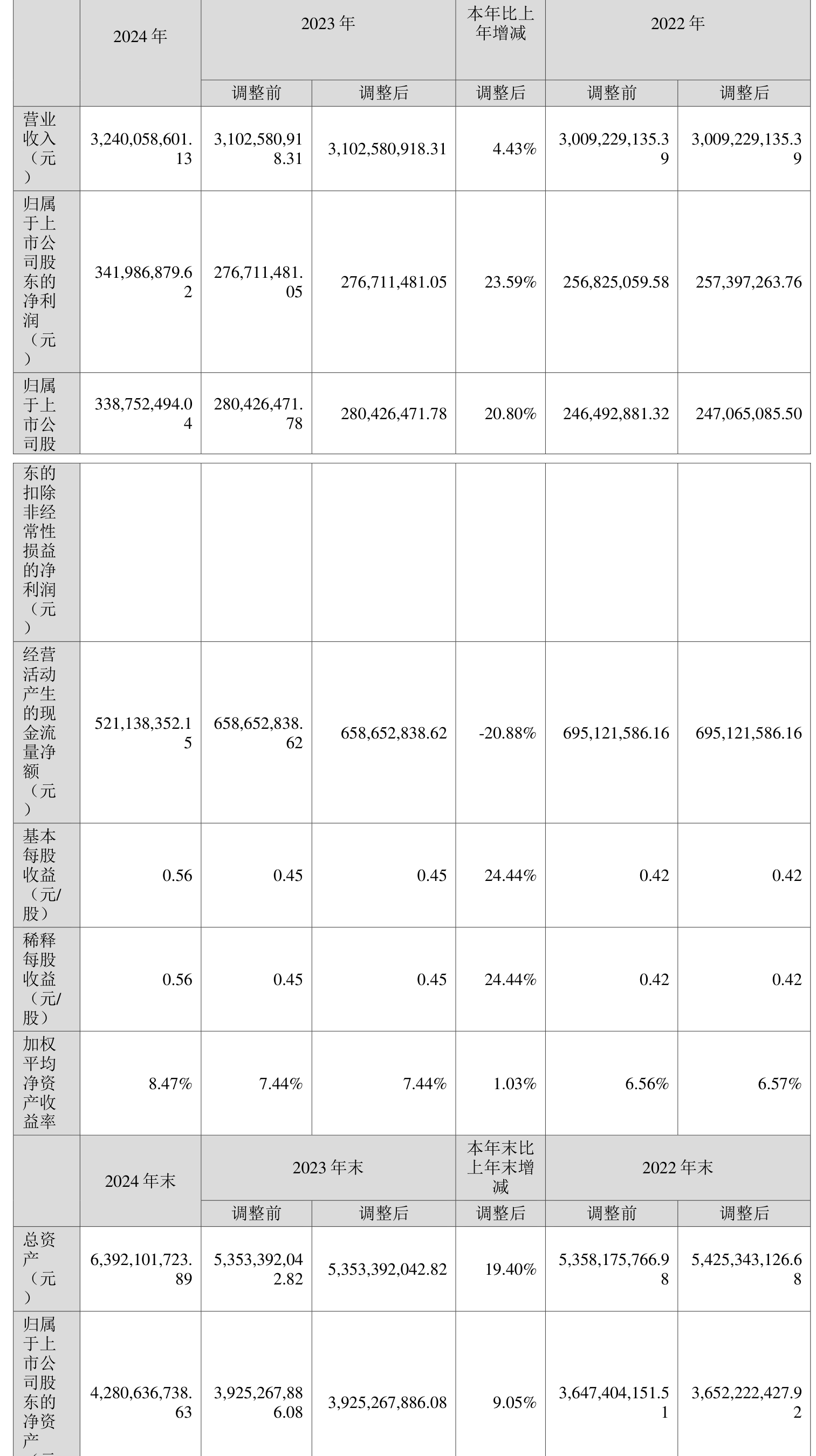 数据显示,2024年公司加权平均净资产收益率为8.47%,较上年同期上升1.03个百分点。公司2024年投入资本回报率为6.97%,较上年同期上升0.86个百分点。