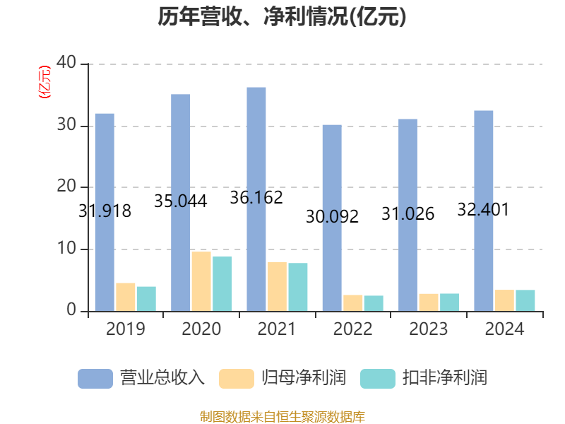 中证智能财讯金达威(002626)4月10日披露2024年年度报告。2024年,公司实现营业总收入32.4亿元,同比增长4.43%;归母净利润3.42亿元,同比增长23.59%;扣非净利润3.39亿元,同比增长20.80%;经营活动产生的现金流量净额为5.21亿元,同比下降20.88%;报告期内,金达威基本每股收益为0.56元,加权平均净资产收益率为8.47%。公司2024年度分配预案为:拟向全体股东每10股派现4元(含税)。