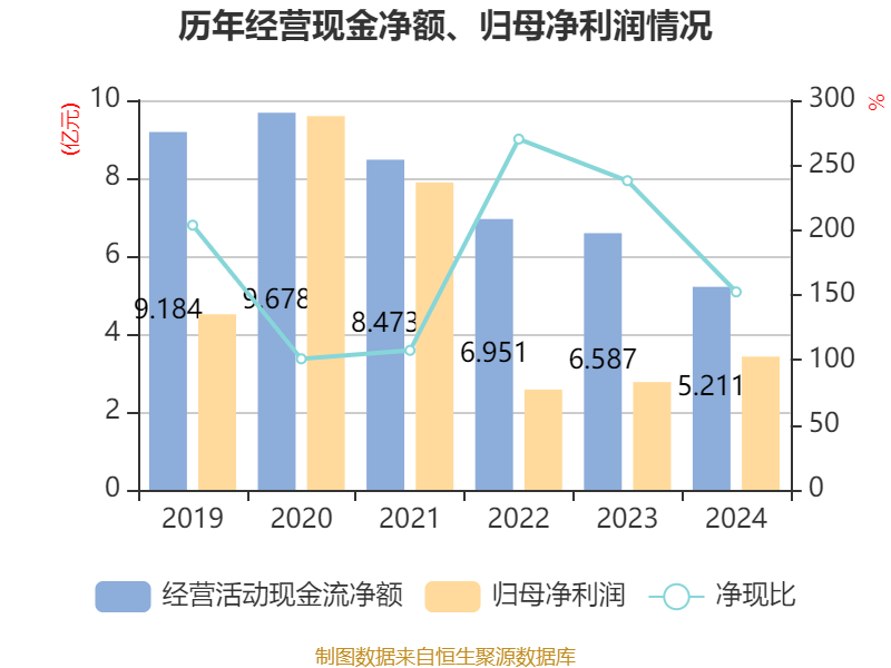 截至2024年,公司经营活动现金流净额为5.21亿元,同比下降20.88%;筹资活动现金流净额3.45亿元,同比增加5.31亿元;投资活动现金流净额-3.17亿元,上年同期为-4.47亿元。