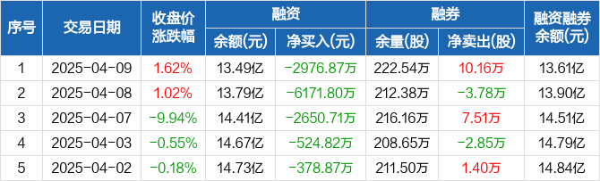 驰宏锌锗融资融券信息显示,2025年4月9日融资净偿还2976.87万元;融资余额13.49亿元,较前一日下降2.16%。