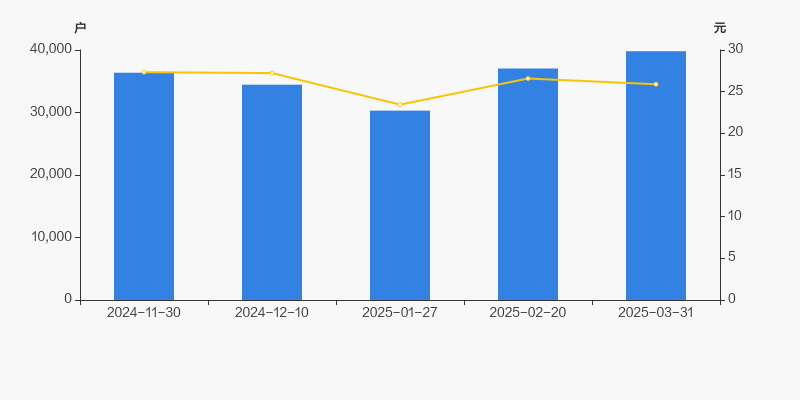 2024年11月30日至今,公司股东户数有所增长,区间涨幅为9.46%。2024年11月30日至2025年3月31日区间股价下降5.30%。