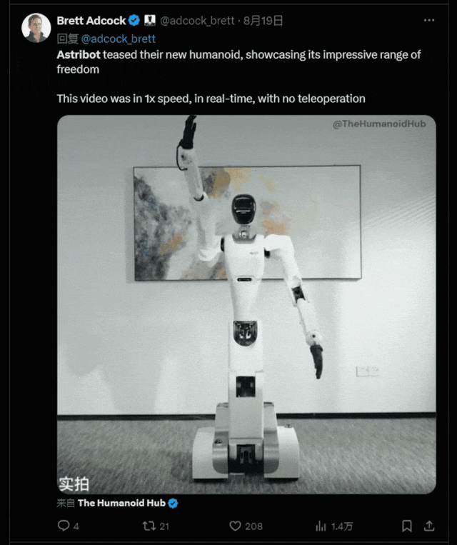在2024年世界机器人大会上,S1展示了弹扬琴、熨叠衣物、物品分拣、颠锅炒菜等能力,迅速吸引了行业关注。Figure AI公司CEO Brett Adcock也关注到了这家中国企业,并在社交媒体上转发介绍。