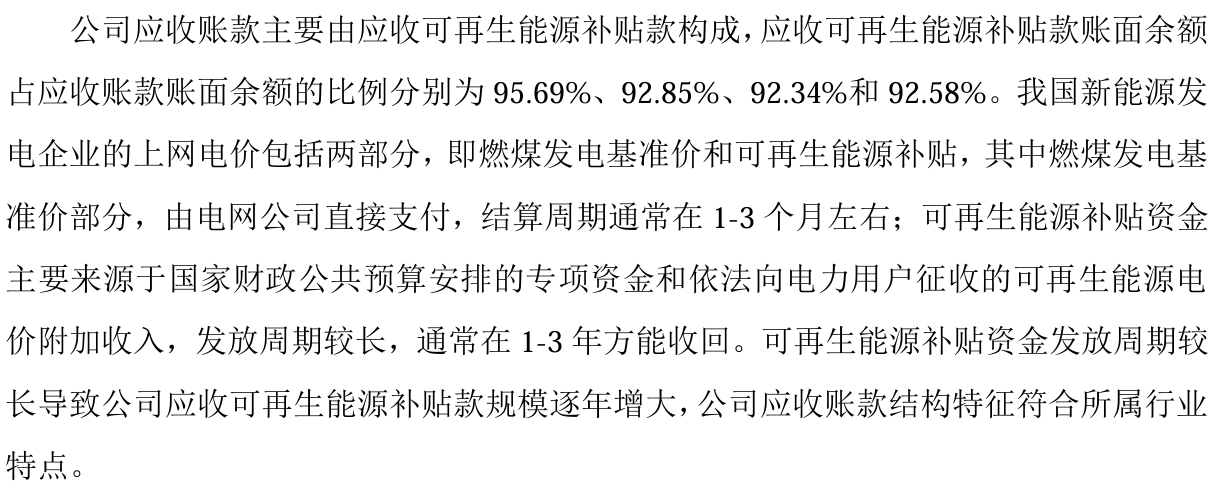 截至2024年6月末,应收账款中账龄超过1年的比例高达49.85%,其中逾期超过3年的占9.10%。与此同时,补贴款在应收账款中占比始终超过90%,凸显其对政策回款的依赖性。