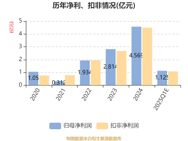中证智能财讯恒铭达(002947)4月10日晚间披露业绩预告,预计2025年一季度归母净利润1.05亿元至1.2亿元,同比增长49.14%-70.44%;扣非净利润预计1亿元至1.16亿元,同比增长45.02%-68.22%;基本每股收益0.41元/股-0.47元/股。以4月10日收盘价计算,恒铭达目前市盈率(TTM)约为14.84倍-15.3倍,市净率(LF)约2.38倍,市销率(TTM)约3.02倍。
