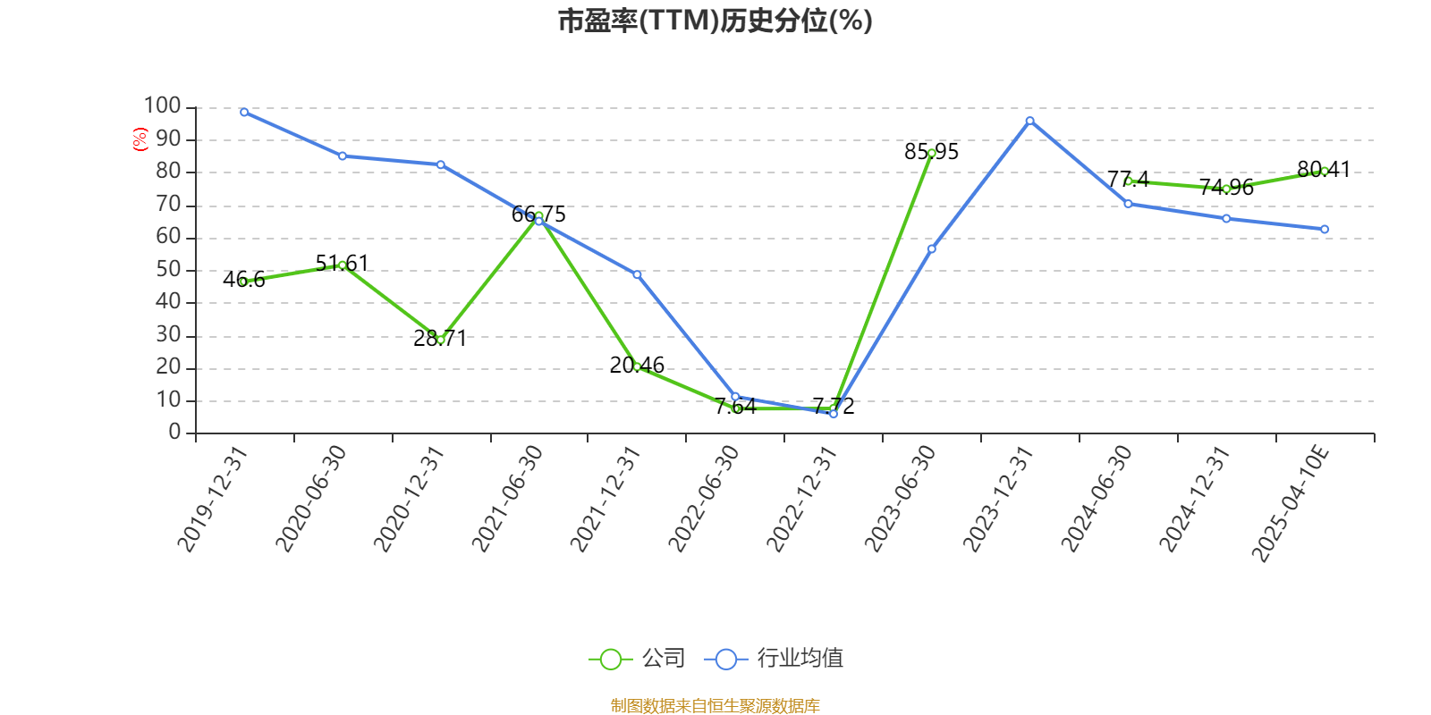 以本次披露业绩预告均值计算,公司近年市盈率(TTM)图如下所示: