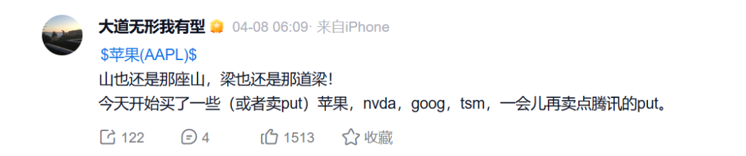 在此番宣布“离开”前,段永平曾透露过自己的加仓计划。4月8日,段永平表示:“今天开始买了一些(或者卖put)苹果,NVDA,GOOG,TSM,一会儿再卖点腾讯的put。”此后,段永平多次分享自己的“实战记录”。