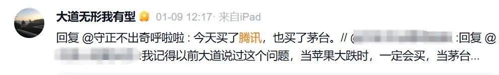 今年1月,腾讯股价大跌。1月9日,段永平即发文称:“今天买了腾讯,也买了茅台。”
