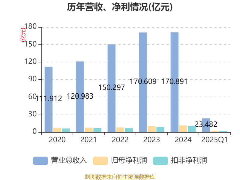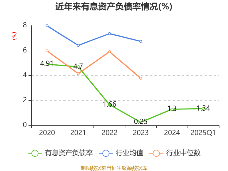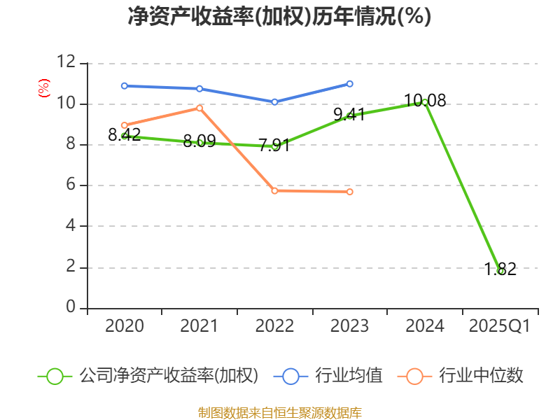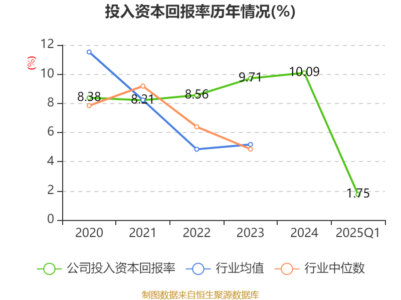 盈利能力方面, 2025年一季度公司加权平均净资产收益率为1.82%,同比下降0.37个百分点。公司2025年第一季度投入资本回报率为1.75%,较上年同期下降0.35个百分点。