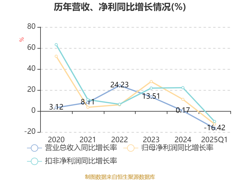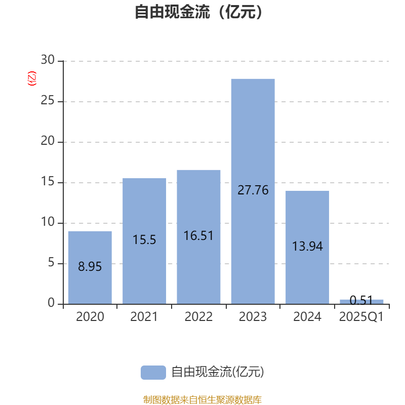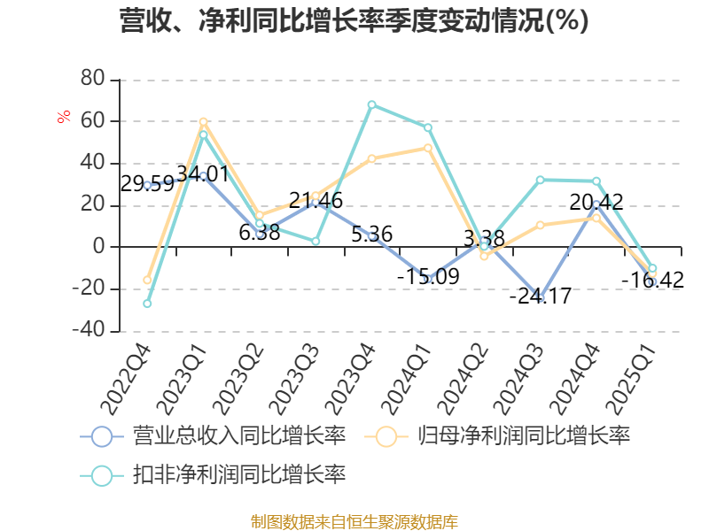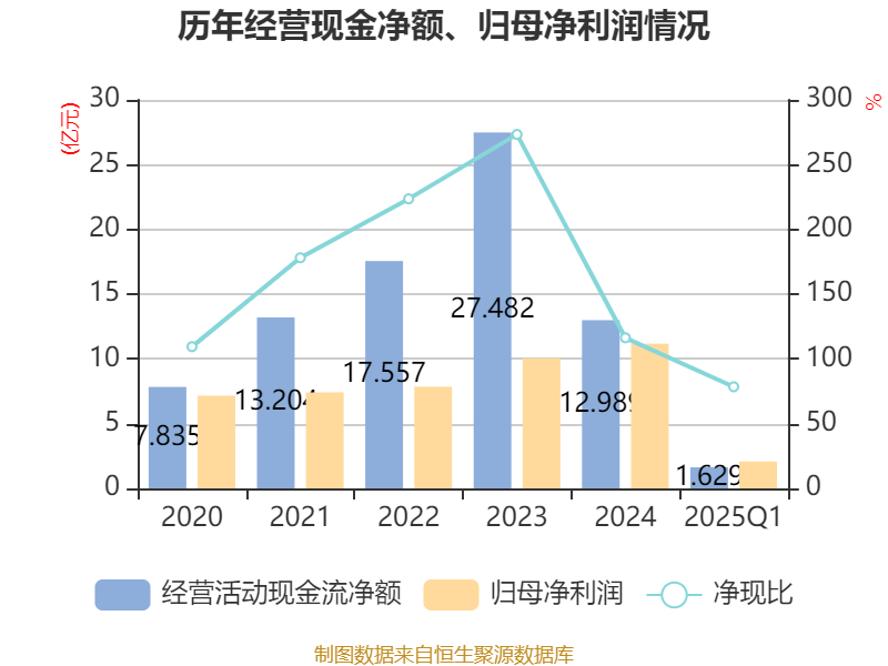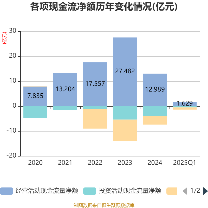 截至2025年一季度末,公司经营活动现金流净额为1.63亿元,同比下降37.44%;筹资活动现金流净额-8711.53万元,同比减少8586.56万元;投资活动现金流净额-5510.99万元,上年同期为-2673.54万元。