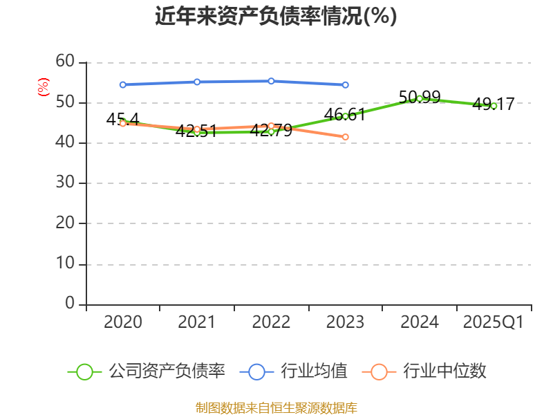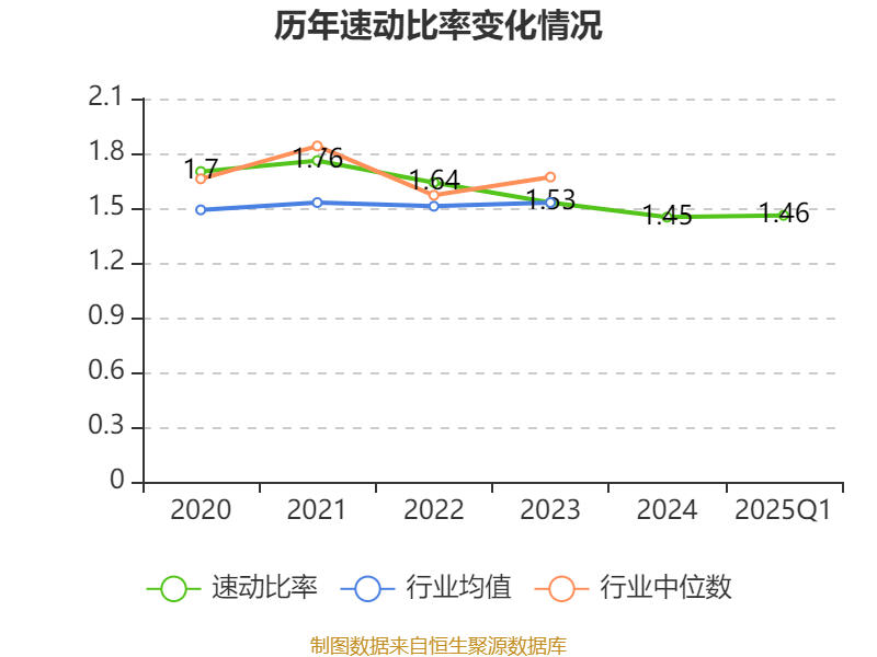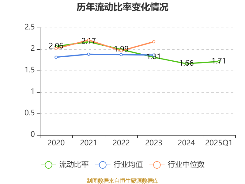 2025年第一季度,公司流动比率为1.71,速动比率为1.46。