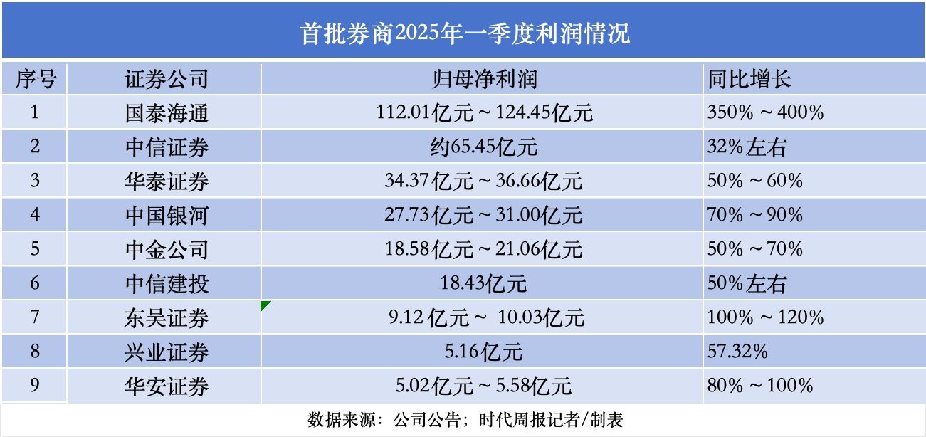 在全球资本市场动荡之时,9家券商发挥“牛市旗手”作用,近日先后发布2025一季度业绩预告或快报,为券商板块增添不少信心。