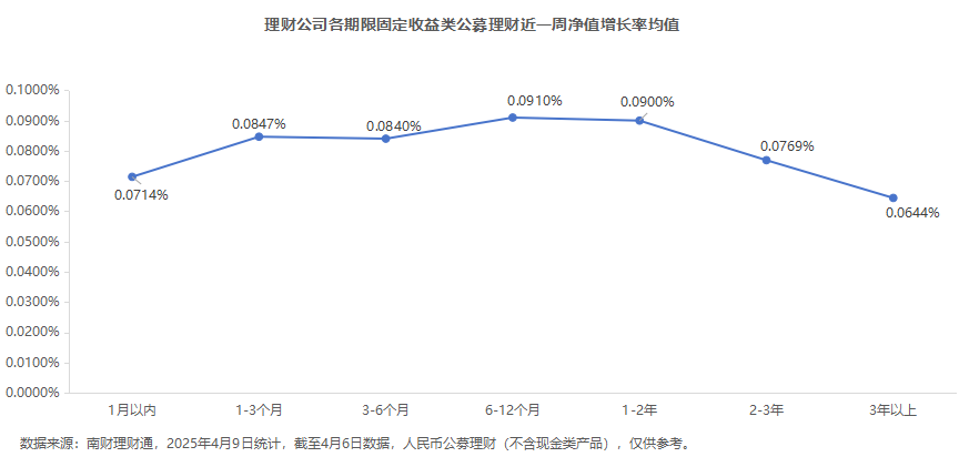 公募理财破净产品数量继续下降。南财理财通数据显示,截至2025年4月6日,理财公司共有22,397只存续公募理财产品,其中214只累计净值低于1,银行理财综合破净率降至0.96%。权益类、混合类理财破净率分别为52.63%和7.53%;固定收益类公募理财破净率仅为0.47%,商品及金融衍生品类理财破净率为零。