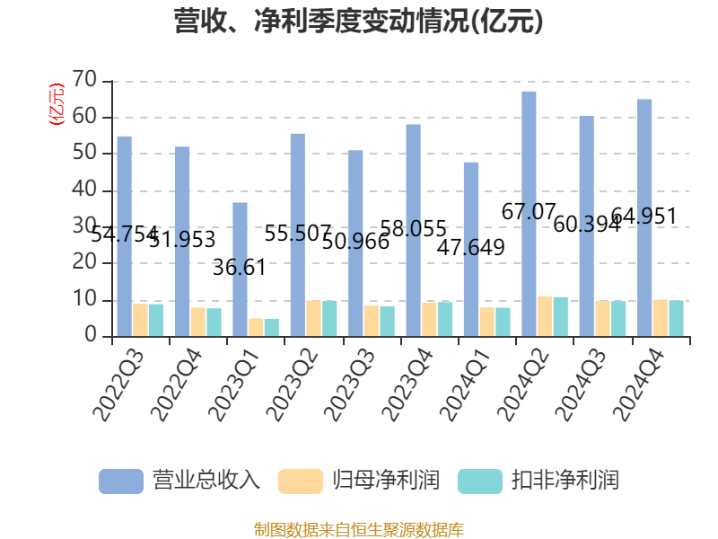 年报显示,2024年末的公司十大流通股东中,新进股东为易方达沪深300交易型开放式指数发起式证券投资基金,取代了三季度末的全国社保基金一一五组合。在具体持股比例上,富国天惠精选成长混合型证券投资基金(LOF)、华泰柏瑞沪深300交易型开放式指数证券投资基金持股有所上升,香港中央结算有限公司、全国社保基金一零九组合、易方达创业板交易型开放式指数证券投资基金、富国天益价值混合型证券投资基金持股有所下降。