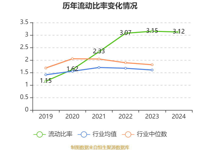 2024年,公司流动比率为3.12,速动比率为2.49。