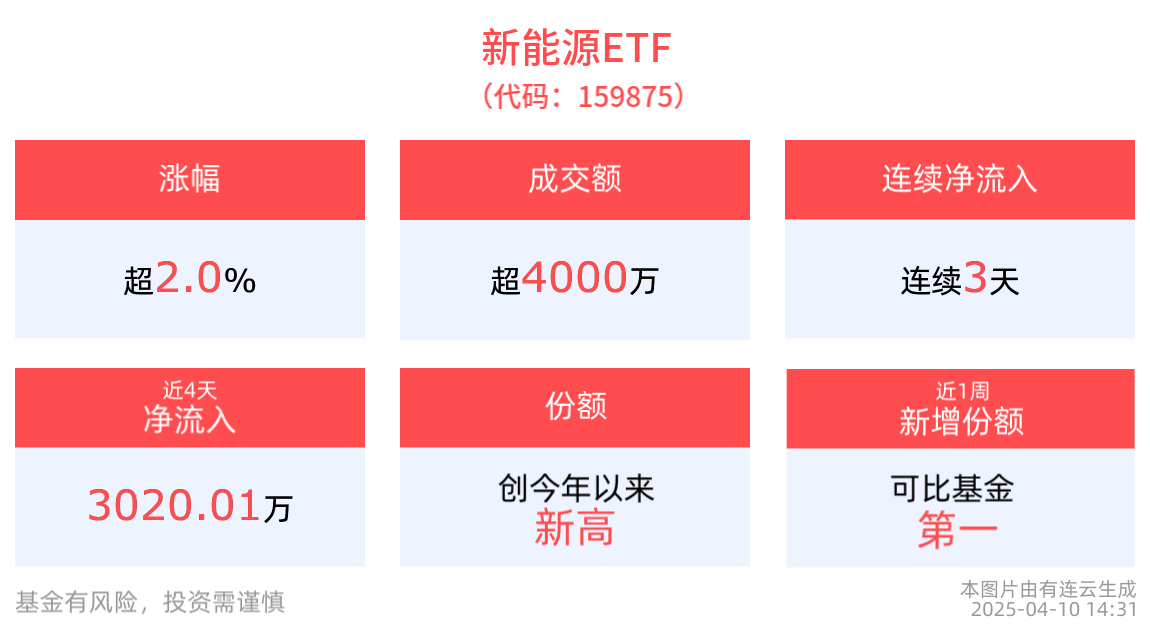 政策驱动与去库共振,新能源ETF(159875)涨超2%,近3天获得连续资金净流入