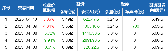 华胜天成融资融券信息显示,2025年4月10日融资净偿还622.47万元;融资余额5.49亿元,较前一日下降1.12%。