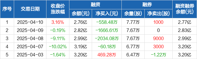 广东鸿图融资融券信息显示,2025年4月10日融资净偿还558.48万元;融资余额2.76亿元,较前一日下降1.98%。