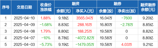 湖北宜化融资融券信息显示,2025年4月10日融资净买入3565.04万元;融资余额9.18亿元,较前一日增加4.04%。