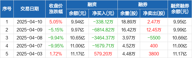 东华能源融资融券信息显示,2025年4月10日融资净偿还338.12万元;融资余额9.94亿元,较前一日下降0.34%