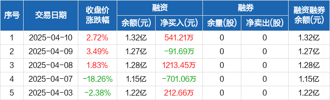 玉马科技融资融券信息显示,2025年4月10日融资净买入541.21万元;融资余额1.32亿元,较前一日增加4.27%