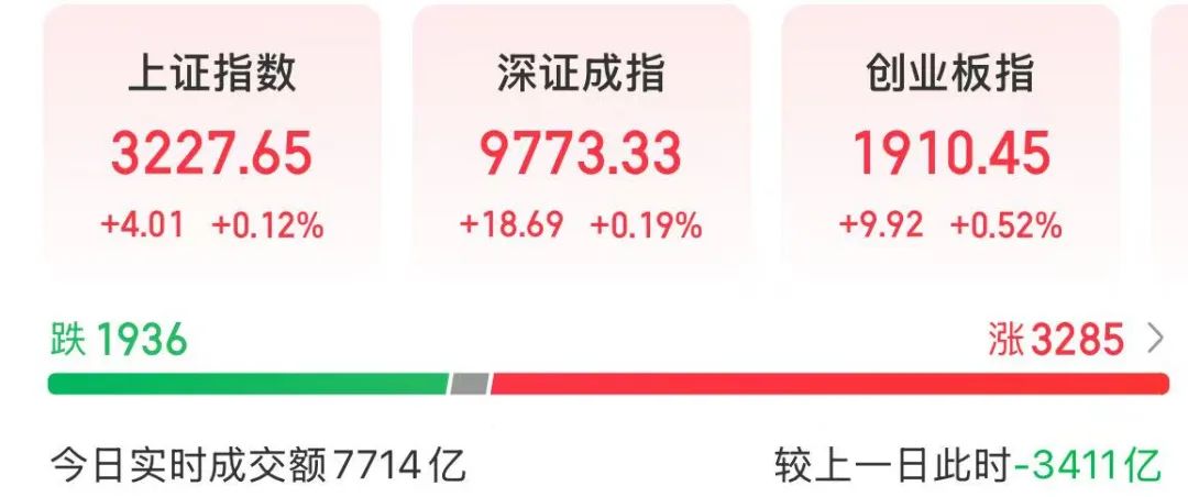 在半导体产业链带动下,临近中午收盘,三大股指集体翻红。截至中午收盘,上证指数上涨0.12%,深证成指上涨0.19%,创业板指上涨0.52%。大消费回调,乳业、白酒等板块领跌。