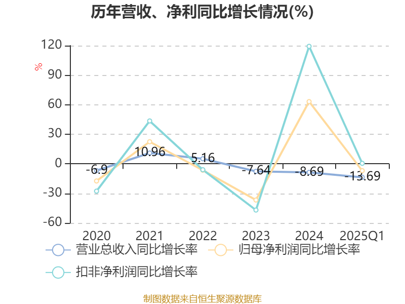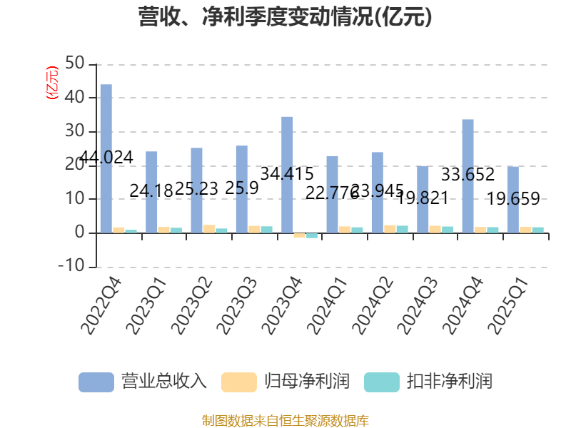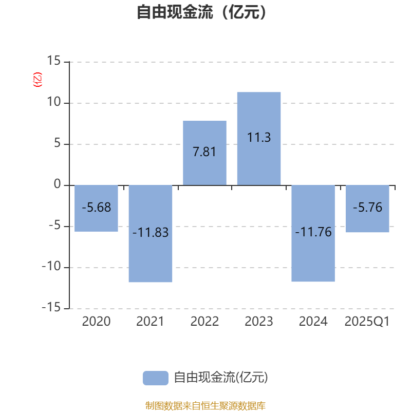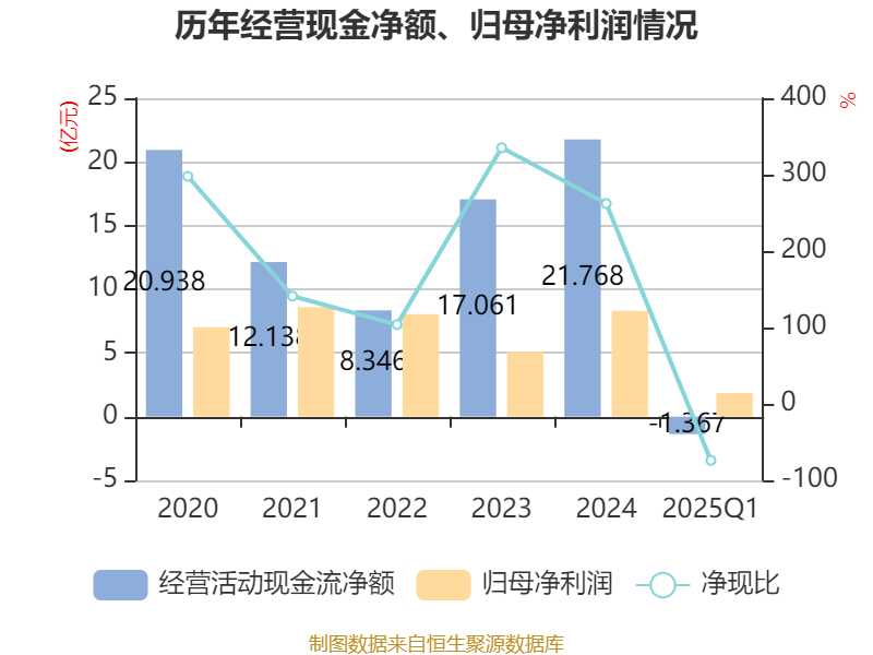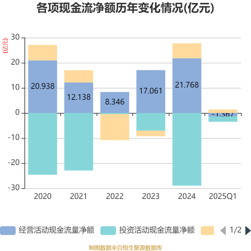 截至2025年一季度末,公司经营活动现金流净额为-1.37亿元,同比减少1.72亿元;筹资活动现金流净额1.37亿元,同比减少6.09亿元;投资活动现金流净额-2.14亿元,上年同期为-8.79亿元。