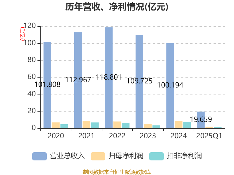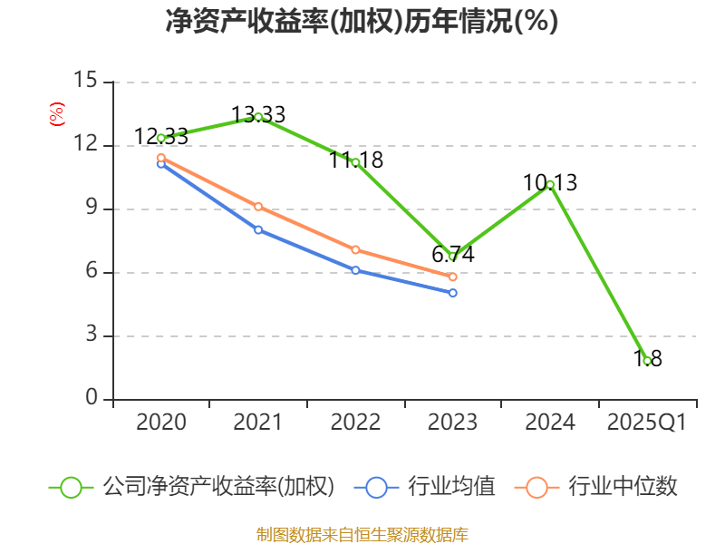 盈利能力方面, 2025年一季度公司加权平均净资产收益率为1.8%,同比下降0.74个百分点。公司2025年第一季度投入资本回报率为1.36%,较上年同期下降0.31个百分点。