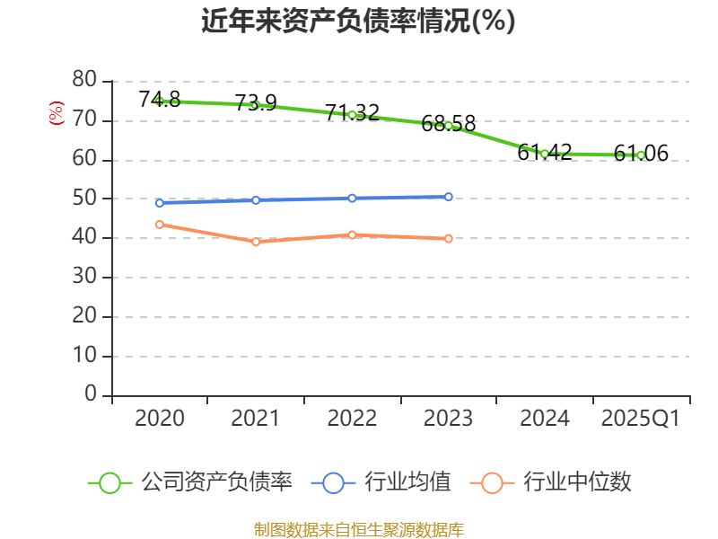 负债重大变化方面,截至2025年一季度末,公司长期借款较上年末减少13.07%,占公司总资产比重下降1.42个百分点;一年内到期的非流动负债较上年末增加30.8%,占公司总资产比重上升0.88个百分点;短期借款较上年末增加47.94%,占公司总资产比重上升0.84个百分点;应付职工薪酬较上年末减少67.79%,占公司总资产比重下降0.5个百分点。