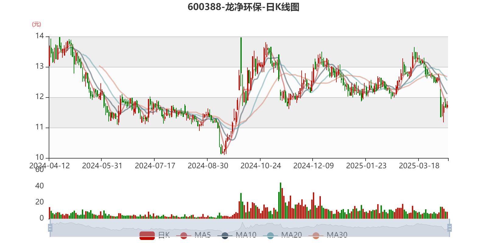 中证智能财讯龙净环保(600388)4月12日披露2025年第一季度报告。公司实现营业总收入19.66亿元,同比下降13.69%;归母净利润1.85亿元,同比下降6.95%;扣非净利润1.72亿元,同比增长0.50%;经营活动产生的现金流量净额为-1.37亿元,上年同期为3552.57万元;报告期内,龙净环保基本每股收益为0.15元,加权平均净资产收益率为1.80%。