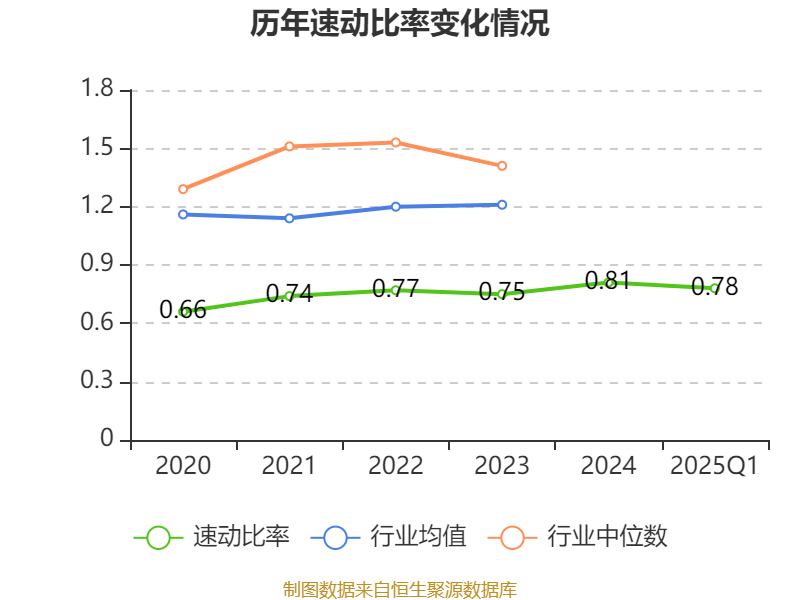 2025年第一季度,公司流动比率为1.17,速动比率为0.78。
